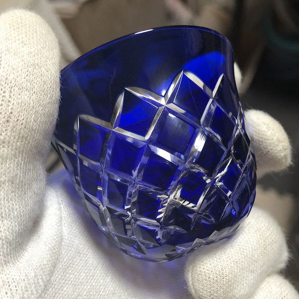構造としては伝統的な矢来に8枚の花びらを持つ底菊で、伝統特化のデザインでオリジナリティは一切入っておりませんので、切子デビューとしての購入も良いかと思います。
