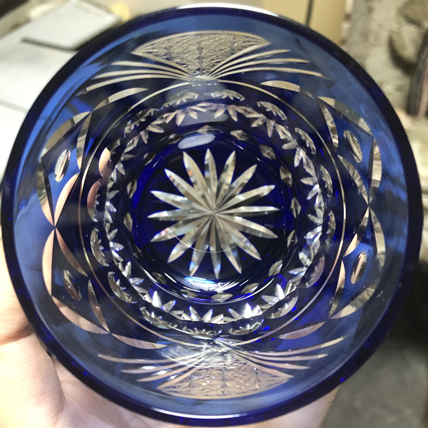 底の角を落としているので、そのデザイン部分も乱反射して透かした先で美しい表情を見せています。
